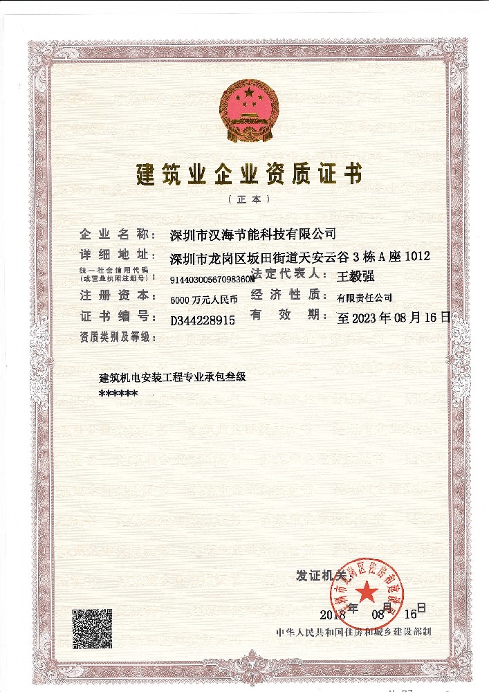 “建筑機(jī)電安裝工程專業(yè)承包叁級(jí)”資質(zhì)